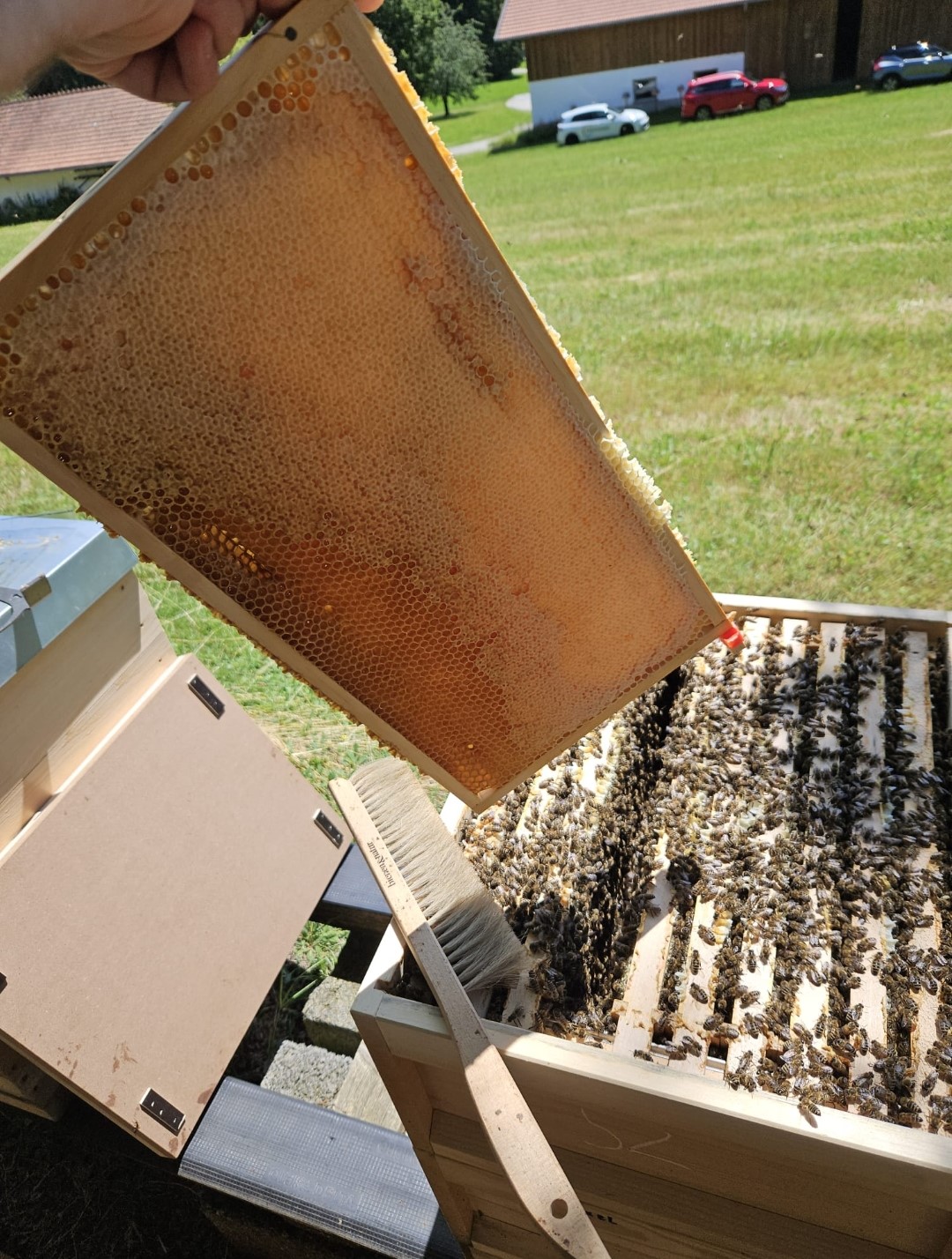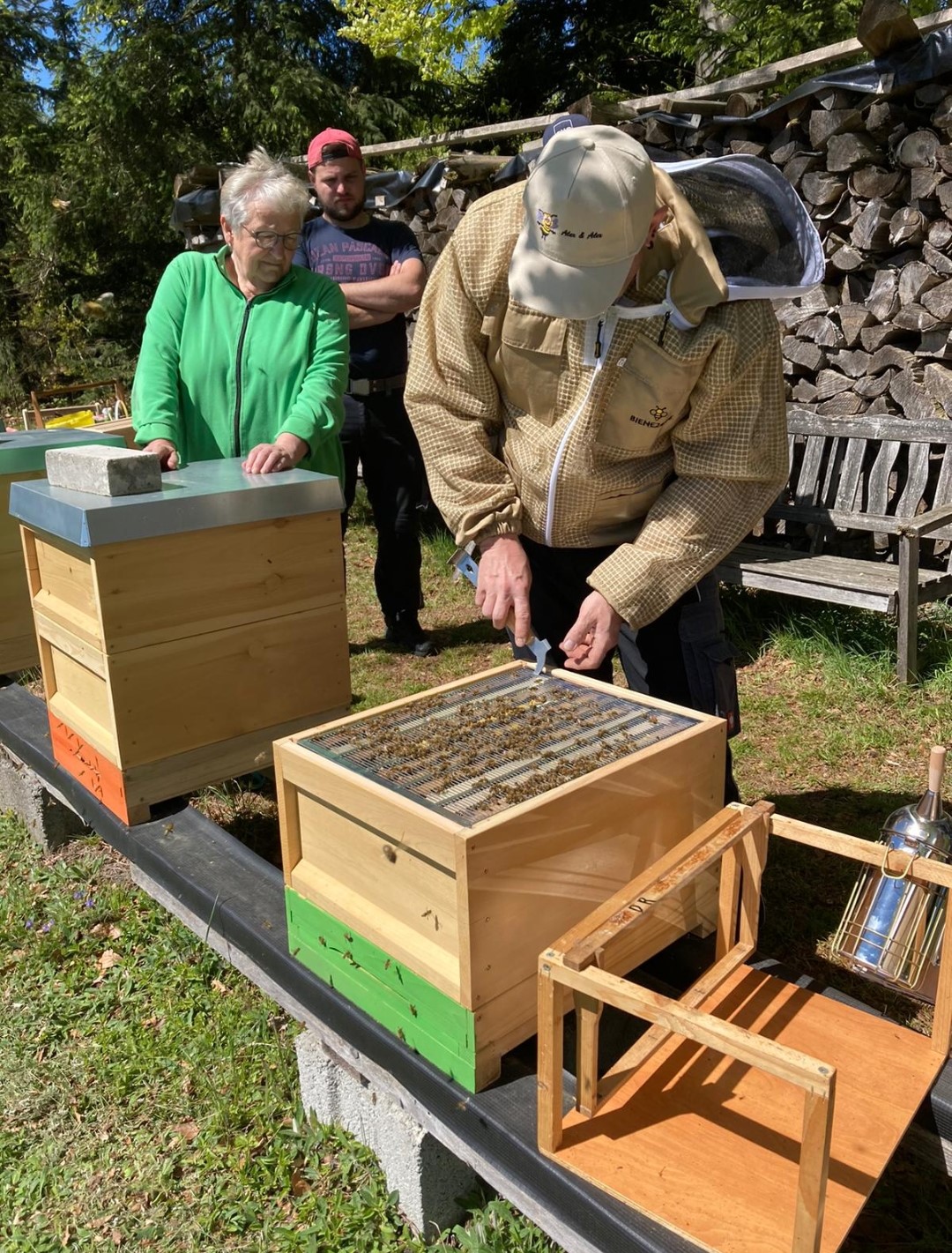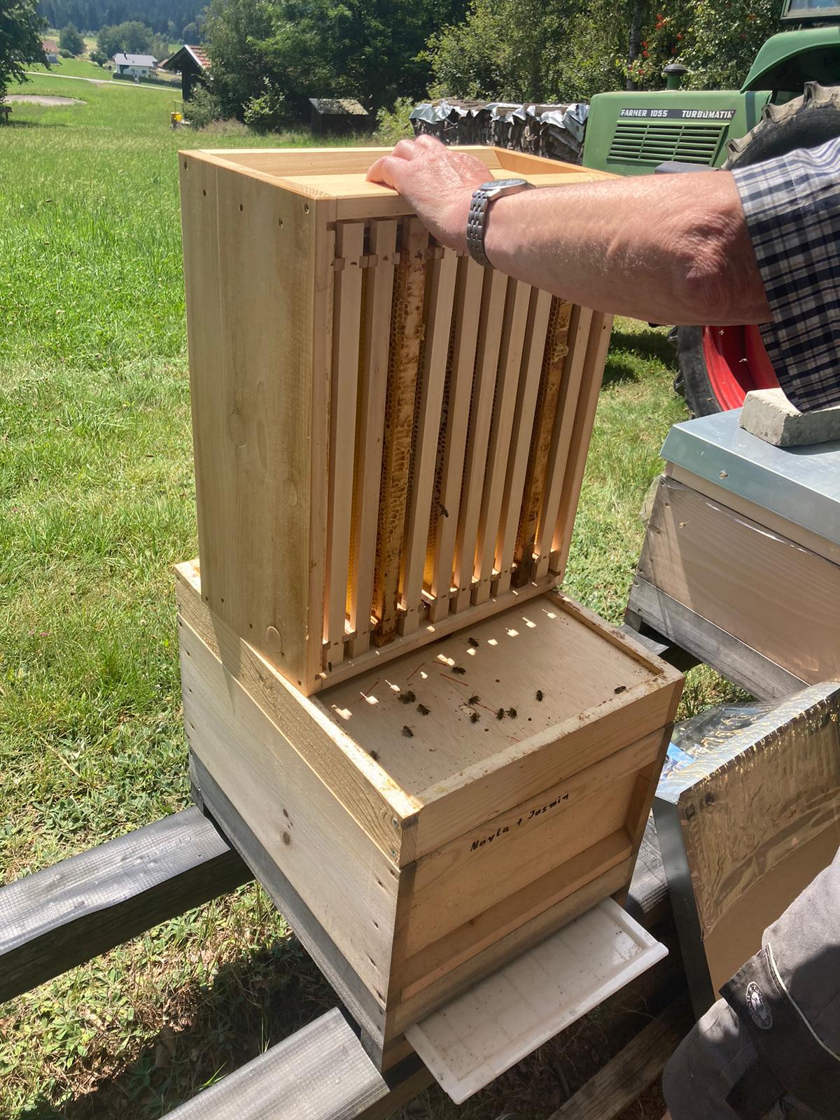 Diese Nervosität legt sich allerdings schnell beim arbeiten mit den Bienen, sobald man merkt wie sanftmütig unsere Bienen heute sind.