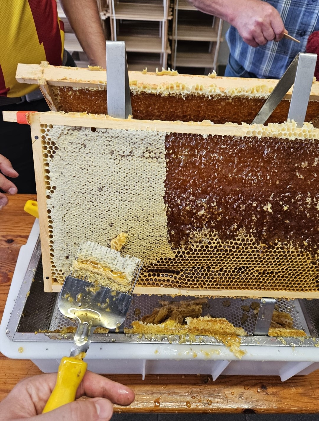 Die Honigernte! – Für viele der Höhepunkt des Jahres, wird man doch nun belohnt für die gute Betreuung seiner Völker und auch entschädigt für den ein oder anderen Stich den man einstecken musste. Selbstverständlich wird die Ernte in der Gruppe aufgeteilt und gehört ganz euch!